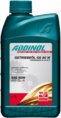 Трансмиссионное масло ADDINOL Getriebeöl GS 80 W изготовлено на основе устойчивых к старению рафинатов минеральных масел, легированных высококачественным пакетом фосфорносерных присадок.
