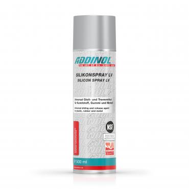 ADDINOL Silikonspray LV изготовлен на основе высококачествен-ного маловязкого силиконового масла и не содержат растворите-лей. После распыления образуется смазочная пленка, характери-зующаяся нейтральным запахом и устойчивая к воде, свету и атмосферным воздействиям.